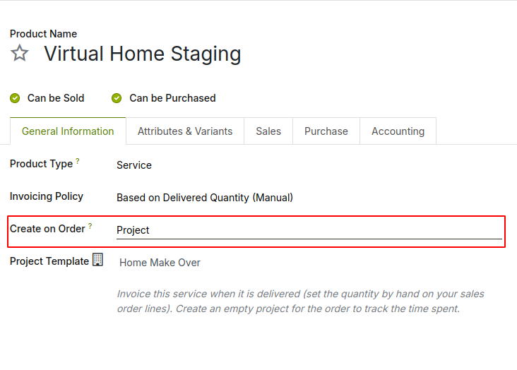 I’m trying to set up a workflow where whenever a sales order is confirmed for a service product, a corresponding project should be generated automatically.