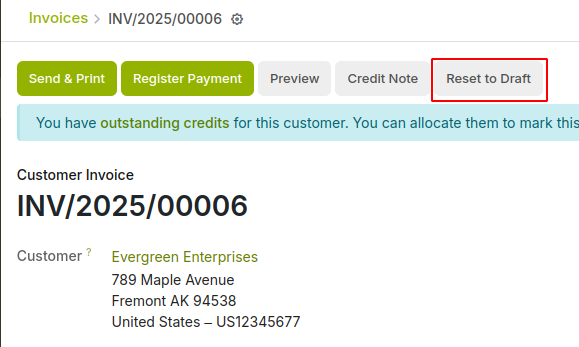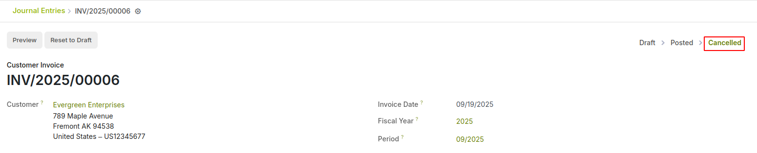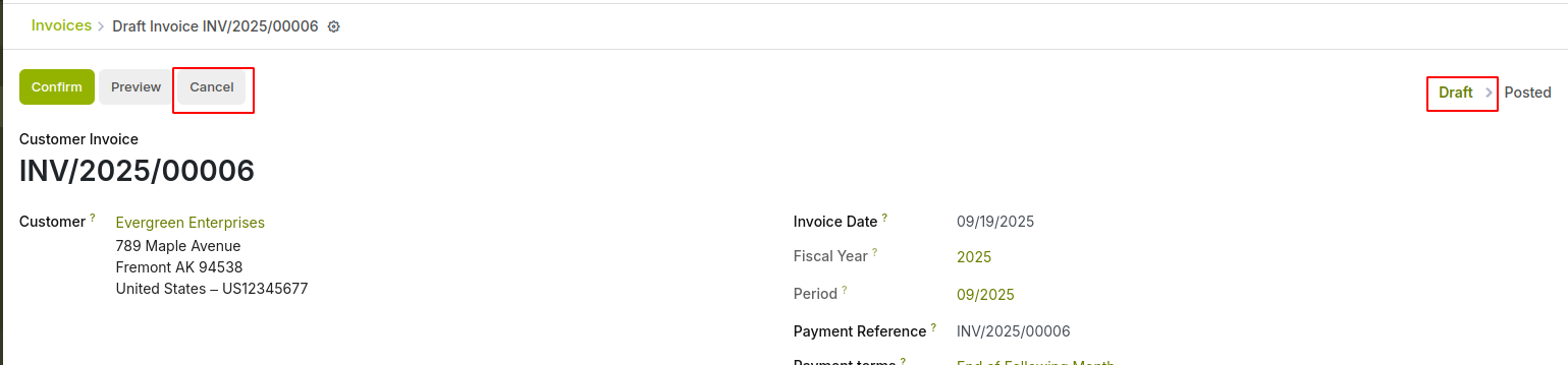 Now the state will be reset into Draft. And you can cancel the Invoice now.