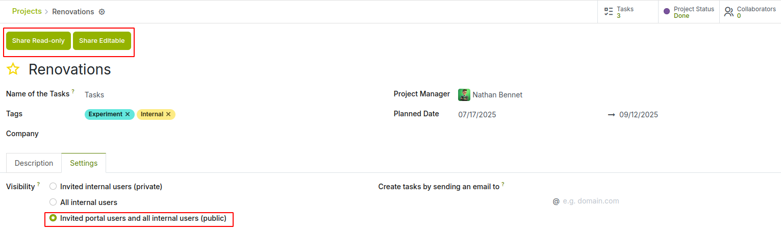 I’m managing a project and want to give my customer visibility into its progress. Is there a way to share the project with the customer through the portal so they can follow along?
